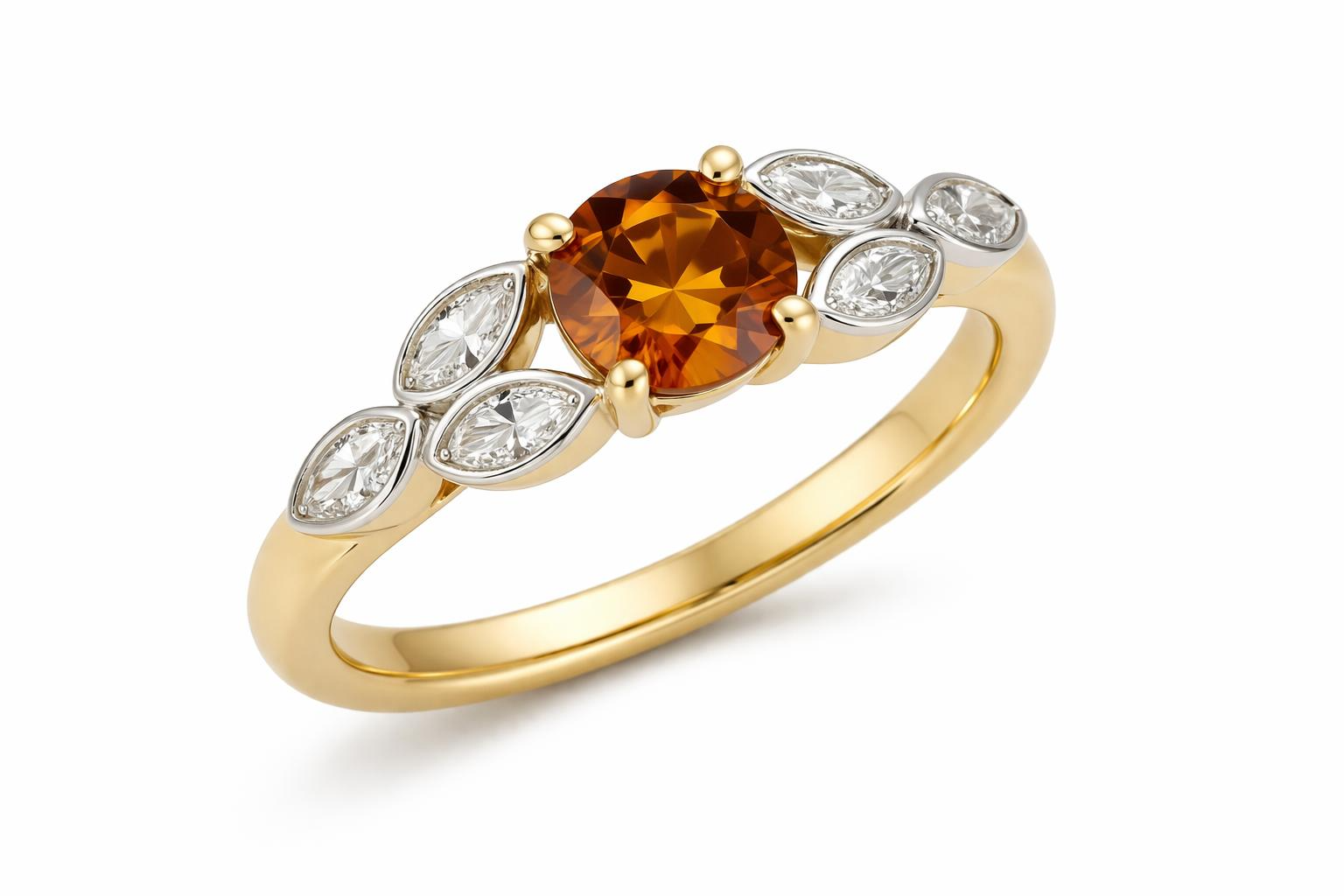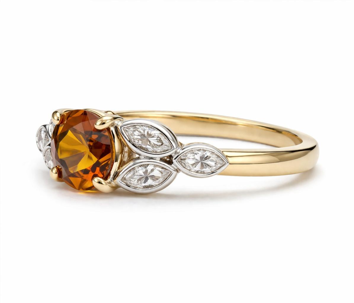 Deze prachtige 14k gouden ring met een 5mm citrien en marquise geslepen labdiamanten VS1-E is een unieke aanzoeksring. Ideaal voor verlovingen, dankzij de elegante gouden kleur en de verfijnde materialen.