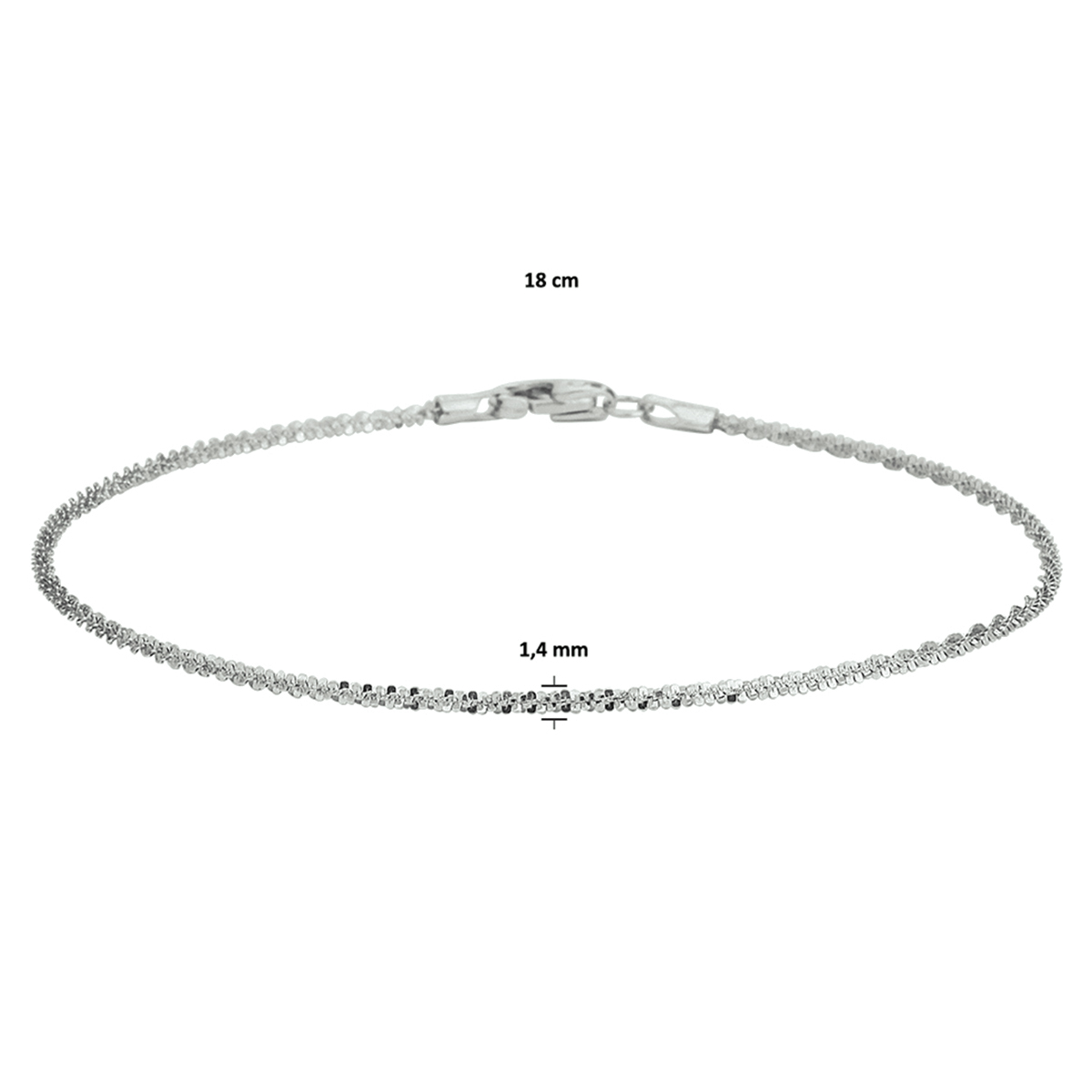 Witgouden armband met een draaglengte van 18cm en een stevige karabijn sluiting. De armband heeft een schakelbreedte van 1.4mm en kan perfect worden gecombineerd met andere witgouden sieraden.