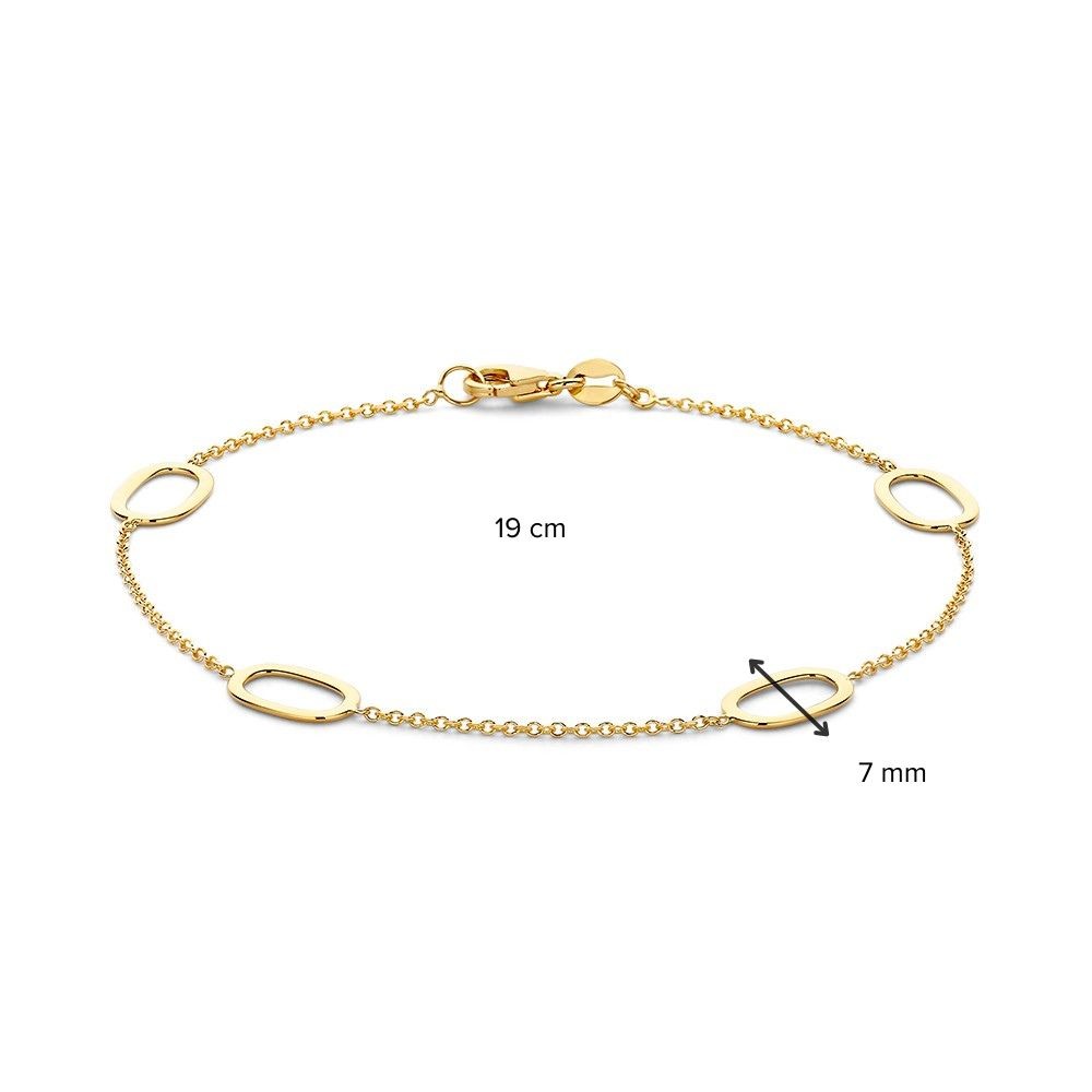 Geelgouden schakelarmband met opengewerkte gouden schakels in ovale vorm.
