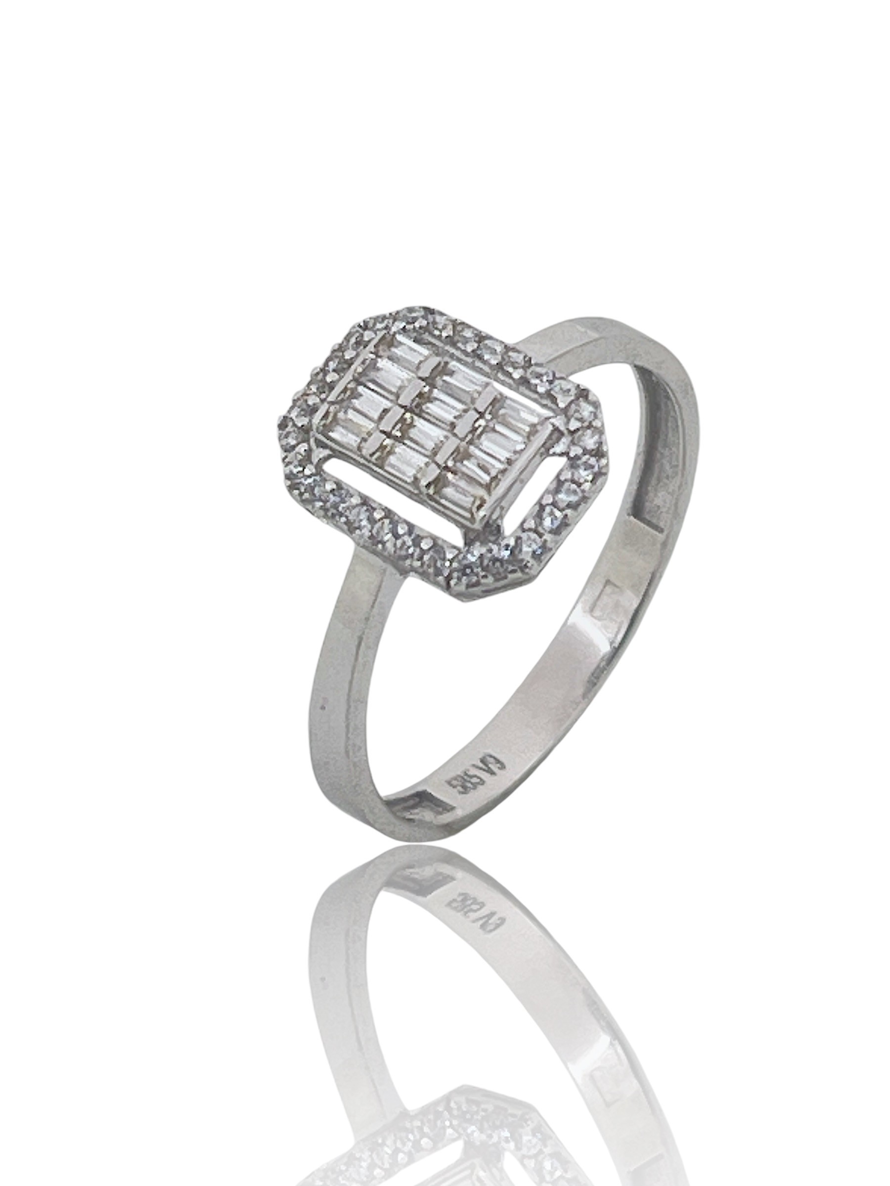 Deze JUWEEL aanzoeksring heeft een baguette vormige steen die schittert en straalt van elegantie. Het is het perfecte accessoire voor een speciale gelegenheid of een romantisch aanzoek. Draag deze ring aan de ringvinger van je linkerhand om je liefde en toewijding te tonen. De ring is gemaakt van hoogwaardige materialen en is een prachtige toevoeging aan elke sieradencollectie.