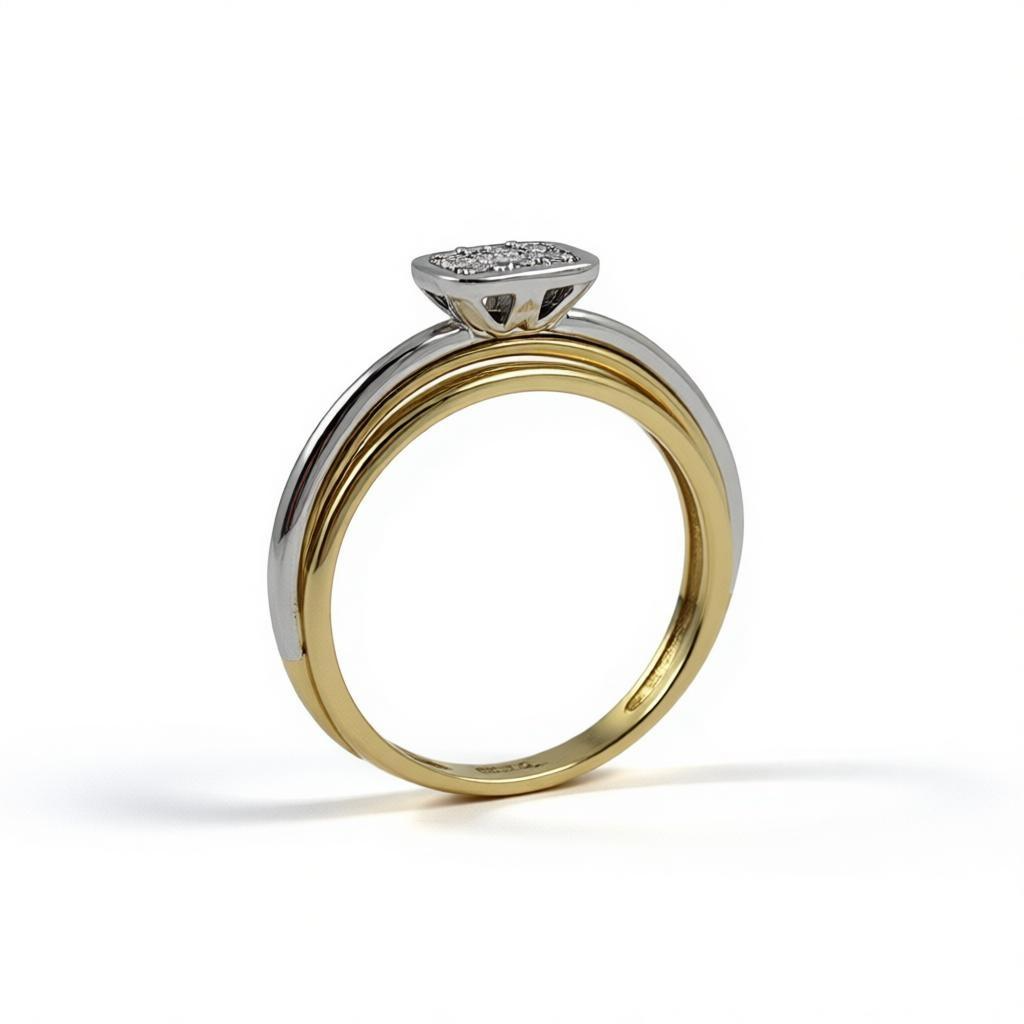 De Bi-color diamanten ring GGA2529 is een verfijnd sieraad met een diamanten subtotaal van 0,12ct en H-SI kwaliteit, gezet in 14 karaats goud. Met maat 55 is deze ring ideaal voor dagelijks gebruik of speciale gelegenheden. Draag hem solo voor een subtiele elegantie of combineer met andere sieraden voor een stijlvolle look.