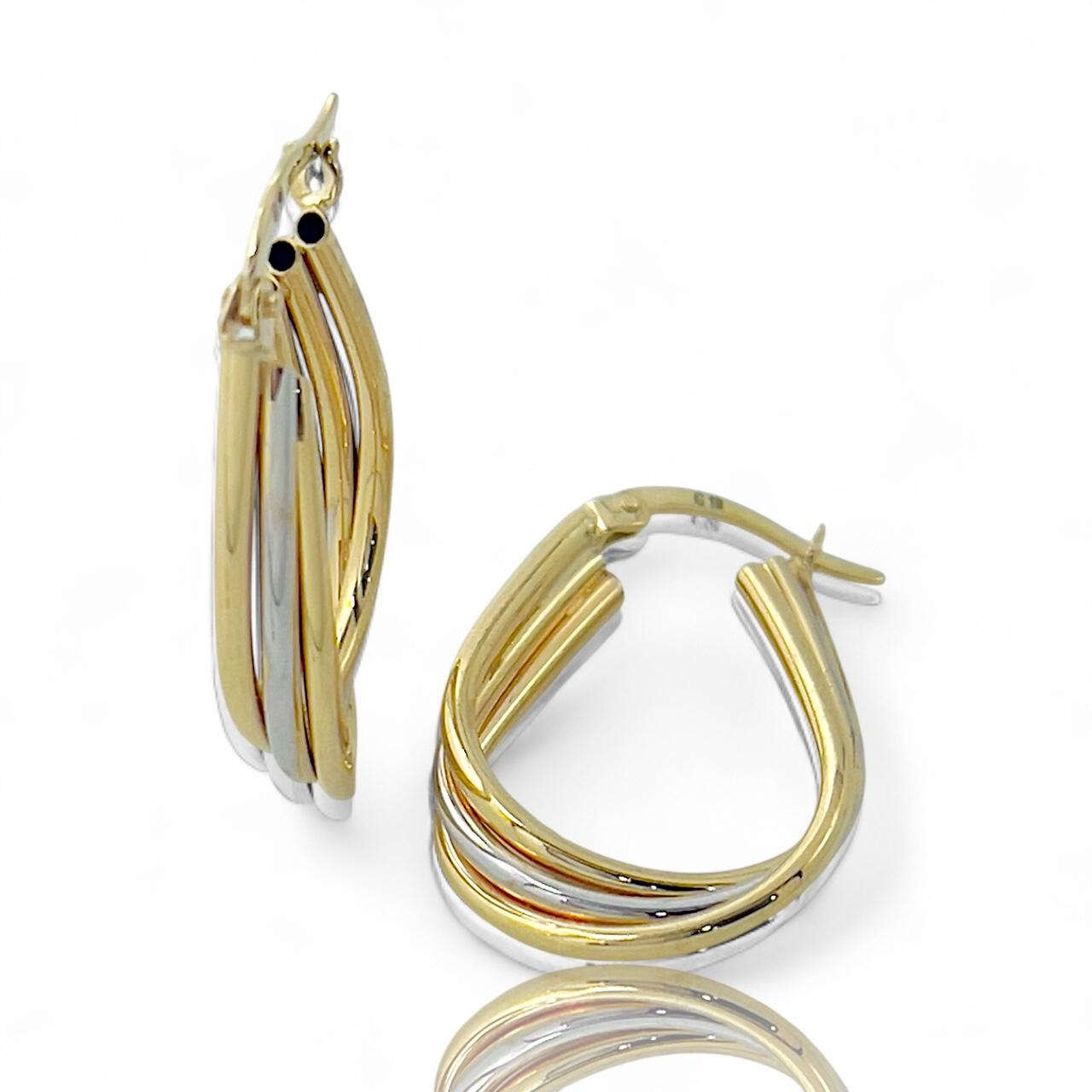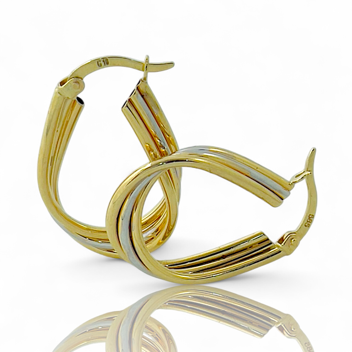 De bi-color oorringen 14k goud, modelnummer BI-COLOR OORRINGEN, zijn verfijnde creolen met een totale karaatgewicht van 14. Draag deze elegante oorbellen om een luxe touch aan je dagelijkse look te geven of als stralend accent bij speciale gelegenheden. Perfect om elke outfit te verheffen met hun tijdloze elegantie en veelzijdigheid.