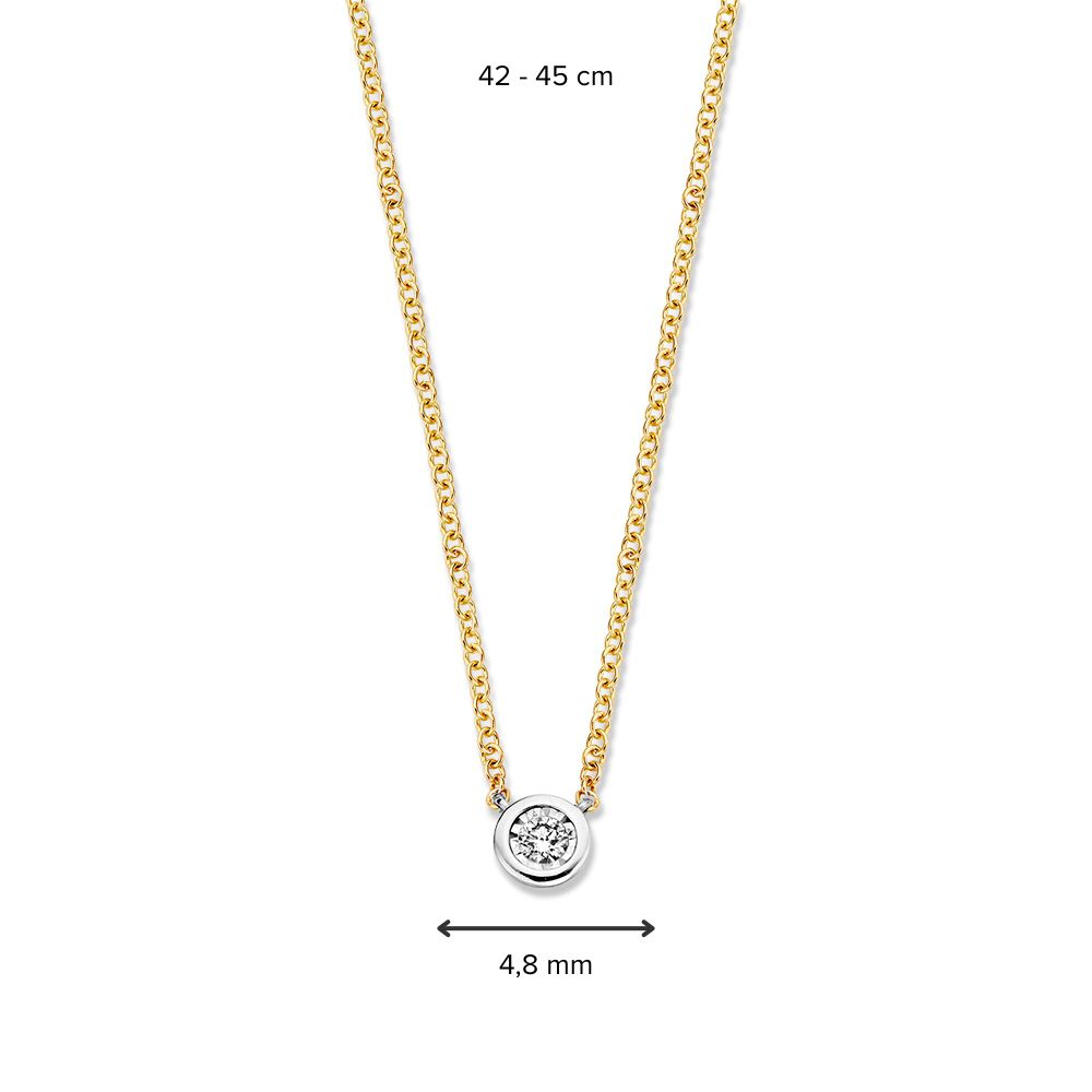Geelgouden collier met witgouden zetkastje met briljant (0.07 crt.) in optische zetting.