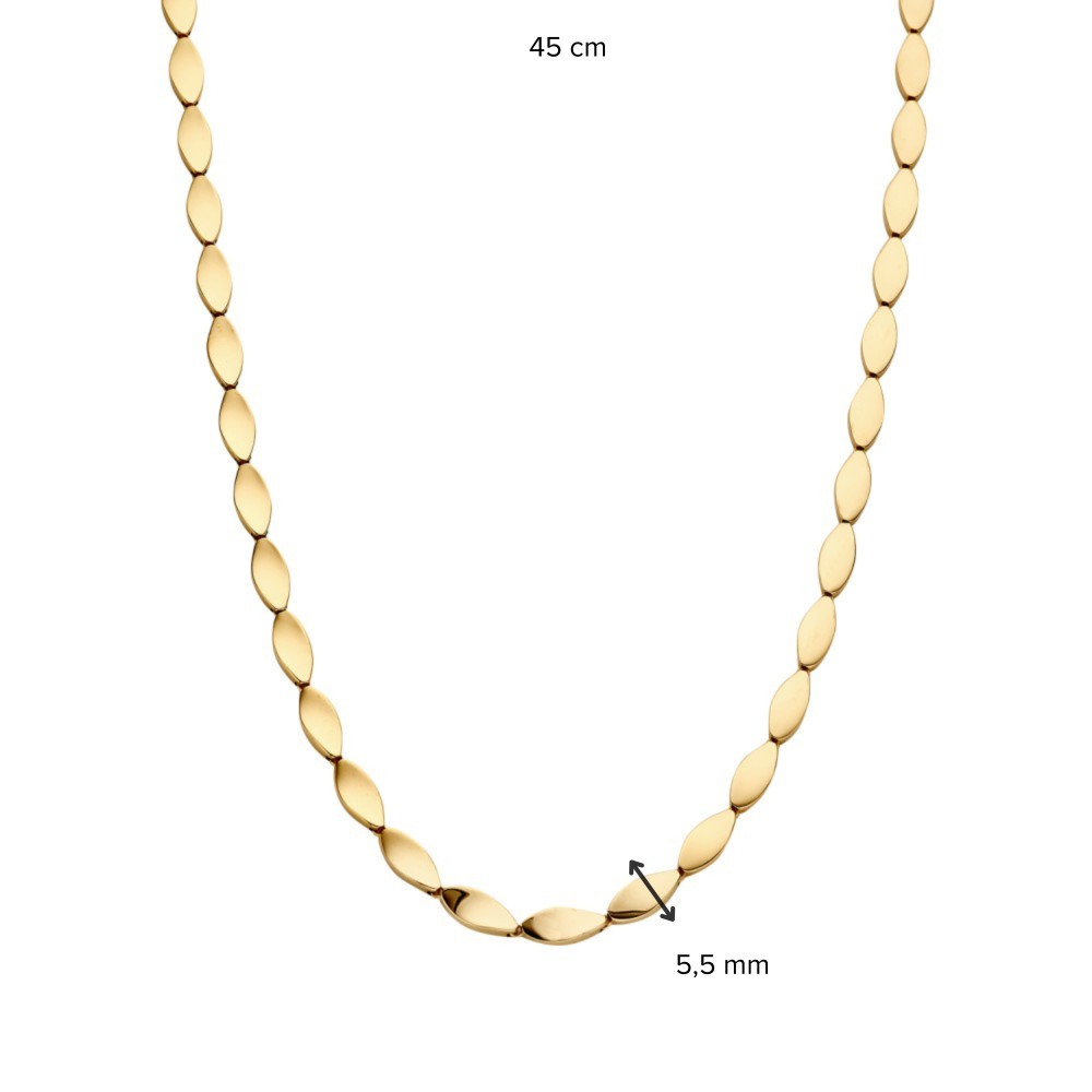 Geelgouden collier met speels vormgegeven elementen.