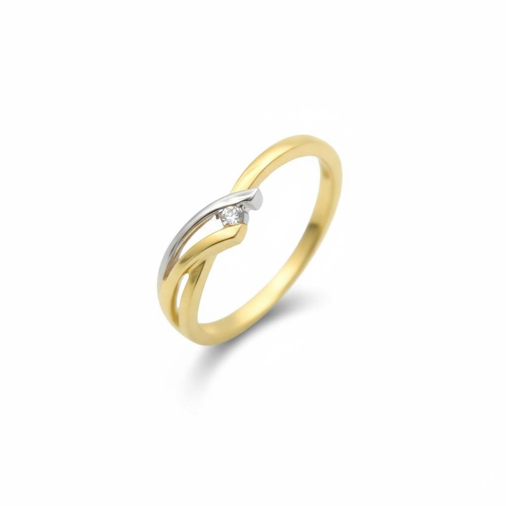 De Fantasie Ring modelnummer GBG0521-14 is een opvallende twee-kleurige ring vervaardigd van 14-karaats goud. Deze ring beschikt over een diamant van 0,02 crt met zuiverheid SI en kleur G. Met zijn ringmaat 55 is deze perfect voor een elegante look. Draag deze betoverende ring solo of combineer met andere ringen voor extra flair.