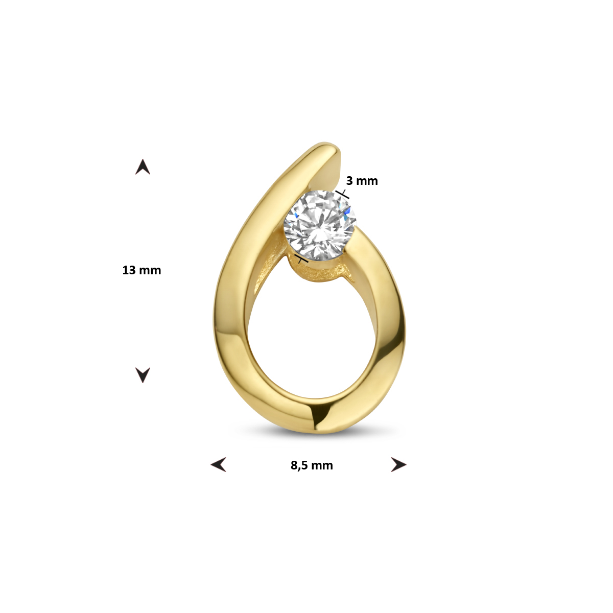 14k Geelgouden hanger uitgevoerd met zirkonia. De hanger heeft afmeting 13x8.5mm.