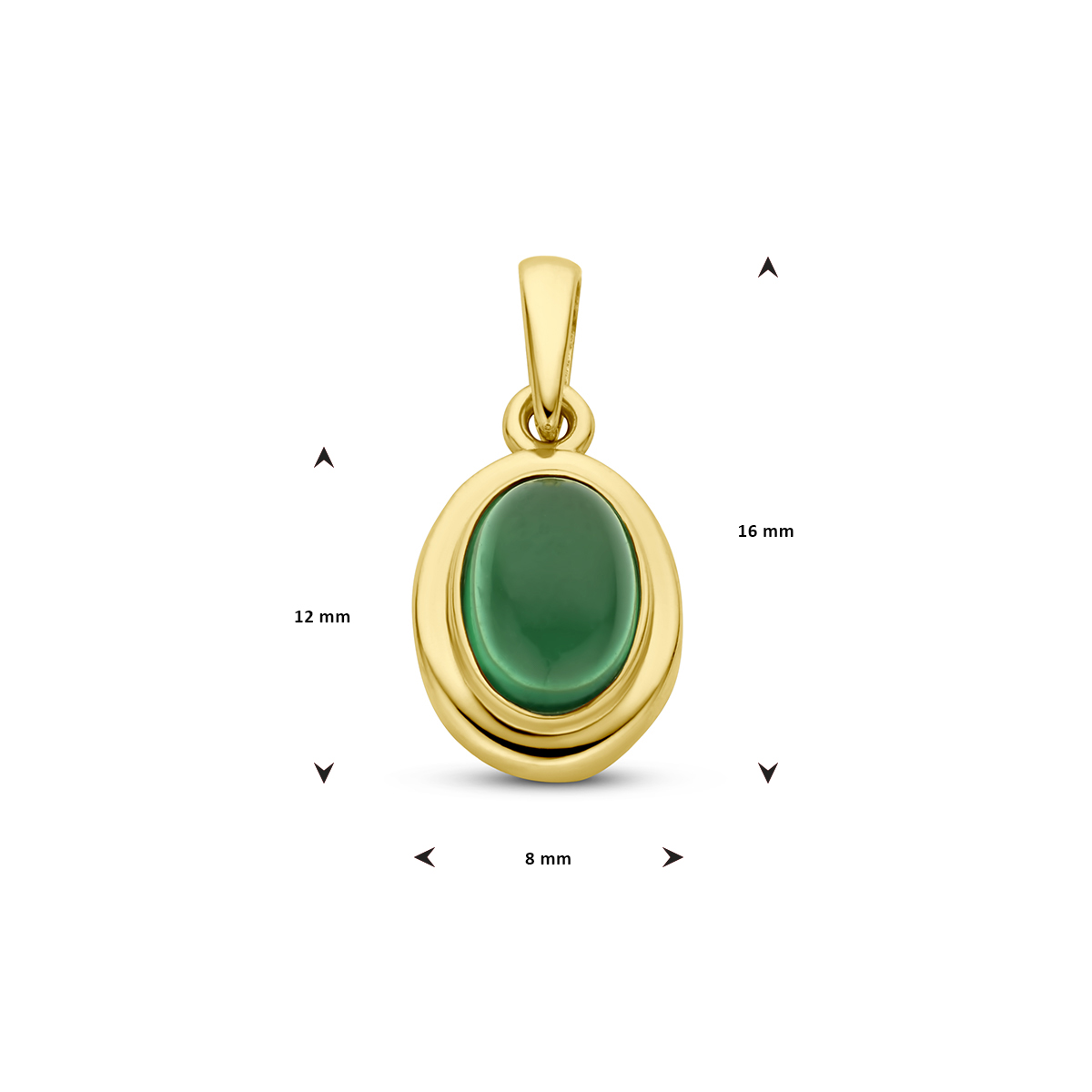 14k Geelgouden hanger uitgevoerd met synthetisch smaragd. De hanger heeft een totale hoogte van 1.6cm.