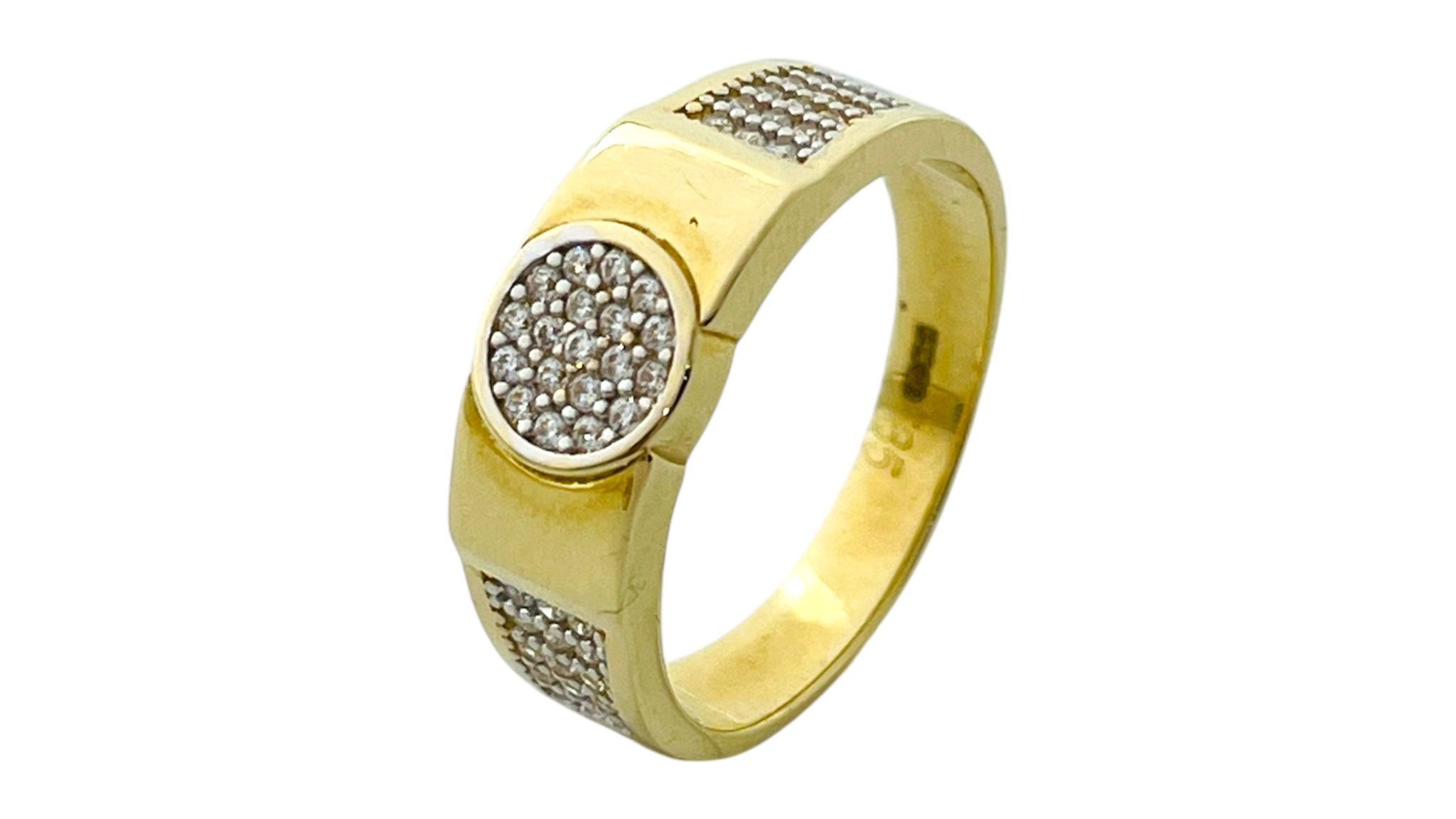 Deze herenring is gemaakt van 14 karaat goud en valt onder de categorie sieraden met een goud-zilver kleur. Perfect voor zowel formele als informele gelegenheden. Draag deze ring als statementstuk aan je ringvinger of combineer met andere ringen voor een gelaagde look. Een tijdloos accessoire dat elke outfit compleet maakt.