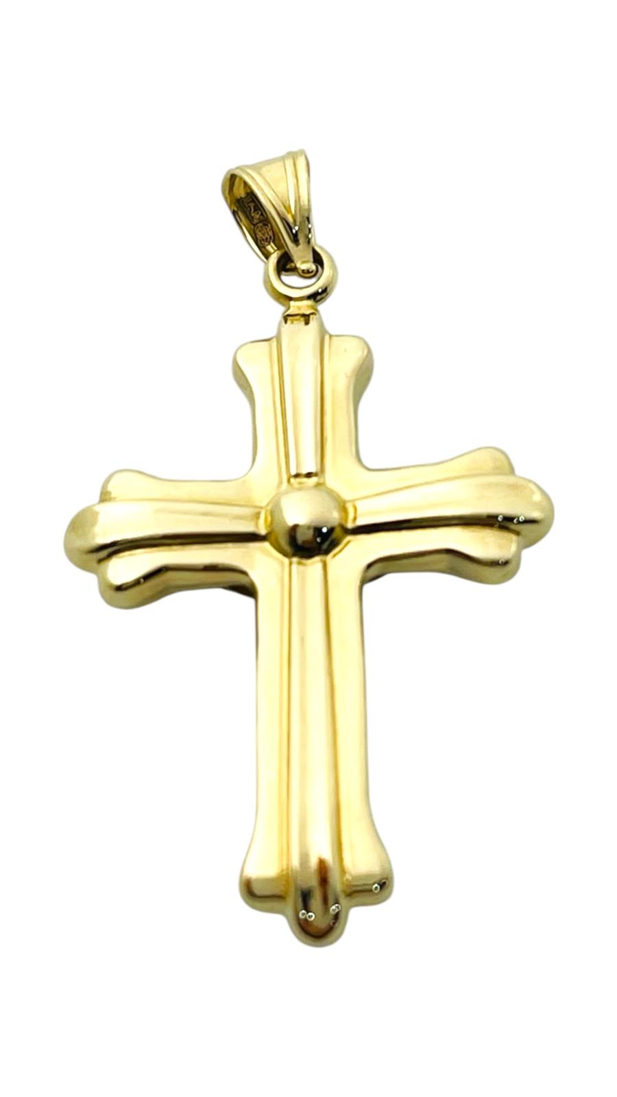 De kruis hanger is een elegante 14 karaat gouden hanger. Deze prachtige gouden hanger, met een breedte van 24mm en een maat van 42mm, straalt luxe en stijl uit. Ideaal te dragen aan een fijne ketting voor een subtiele, maar stijlvolle uitstraling. Perfect voor dagelijks gebruik of speciale gelegenheden.