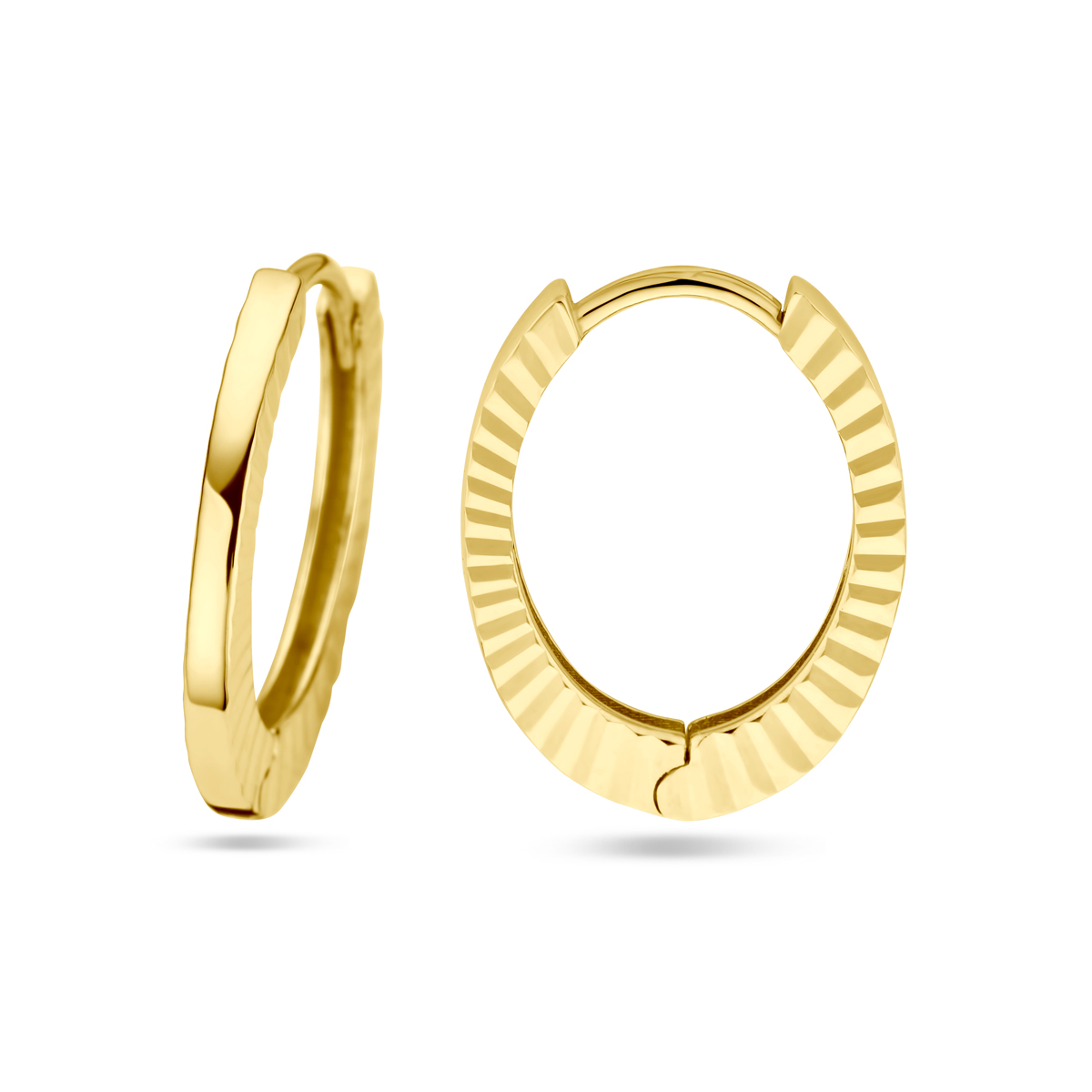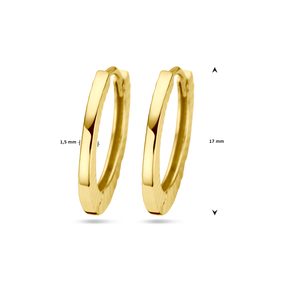 14k Geelgouden klapoorringen met een totale hoogte van 17mm.