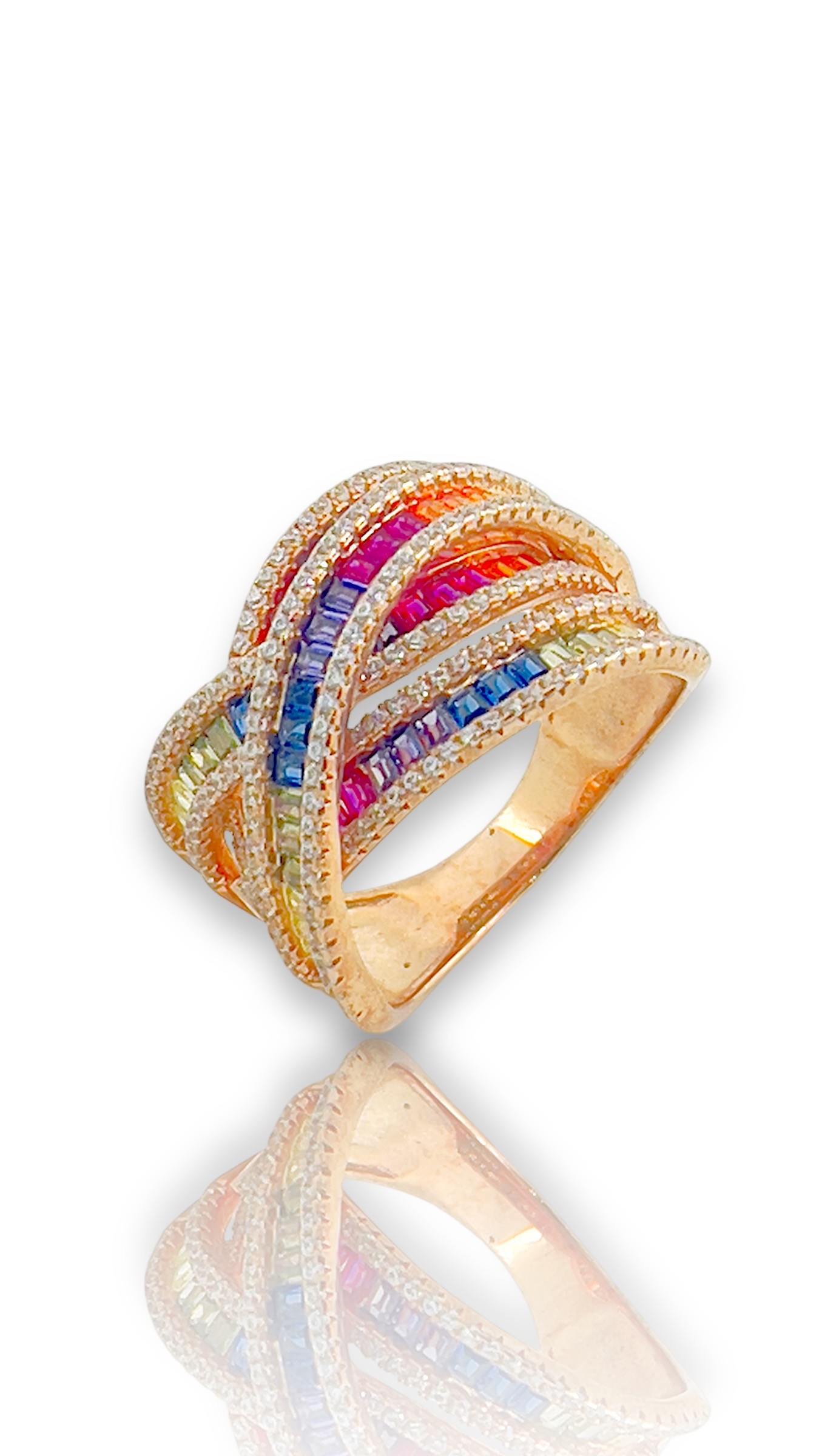 Deze prachtige regenboog zirkonia ring van zilver rosé heeft een uniek en kleurrijk ontwerp. De regenboog zirkonia stenen schitteren in verschillende kleuren en maken deze ring een echte eyecatcher. Draag deze ring solo om je hand te laten stralen of combineer het met andere zilveren of rosé gouden sieraden voor een trendy look. Een must-have voor elke sieradencollectie!