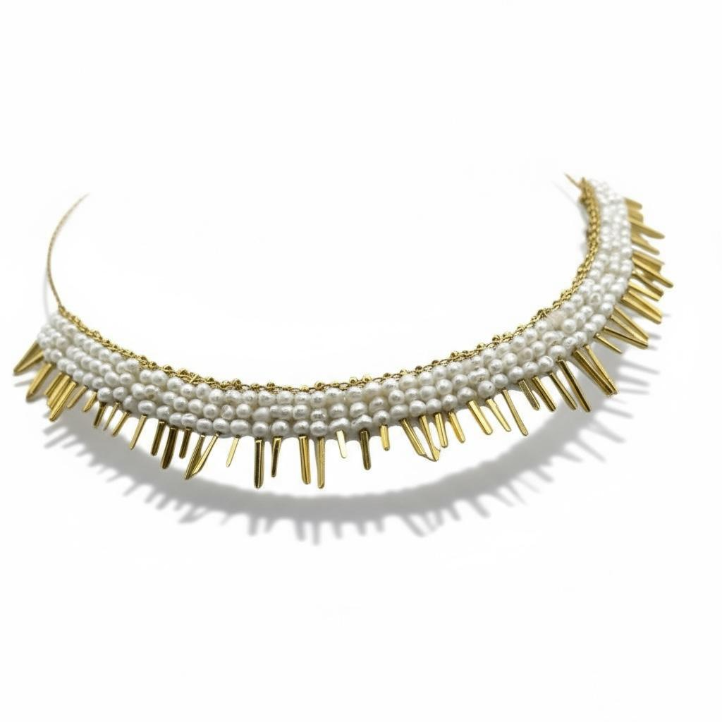 De zilveren choker met zoetwaterparels, verguld in goudkleur, is een elegante halsketting. Met een lengte van 45 cm valt de ketting prachtig om de hals. Perfect te dragen bij zowel formele als casual outfits voor een verfijnde uitstraling. Combineer met bijpassende oorbellen voor een complete look. gemaakt van sterling zilver 925kr